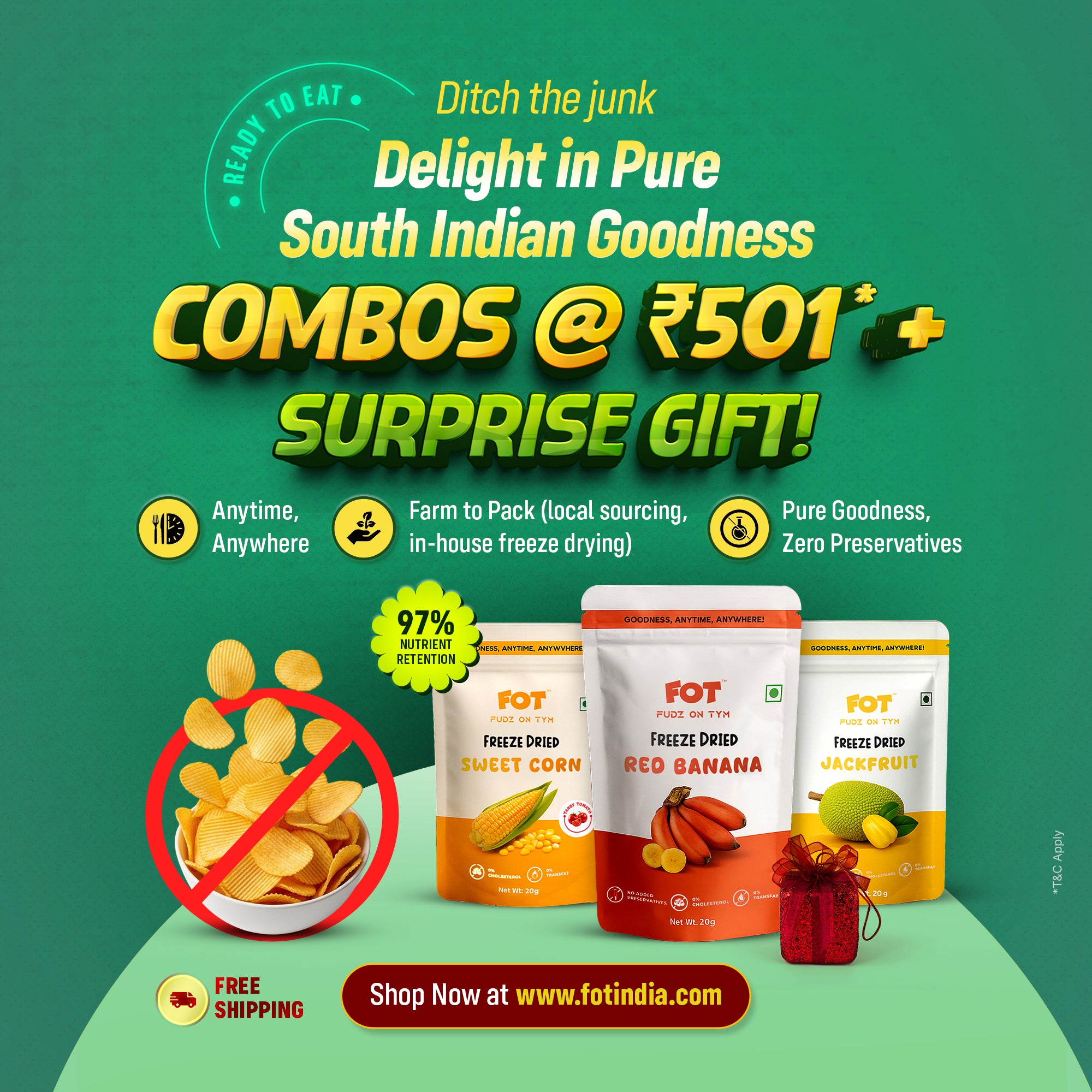 Freeze-dried Red Banana, Jackfruit & Sweet Corn — natural, nutritious, and irresistibly crunchy.