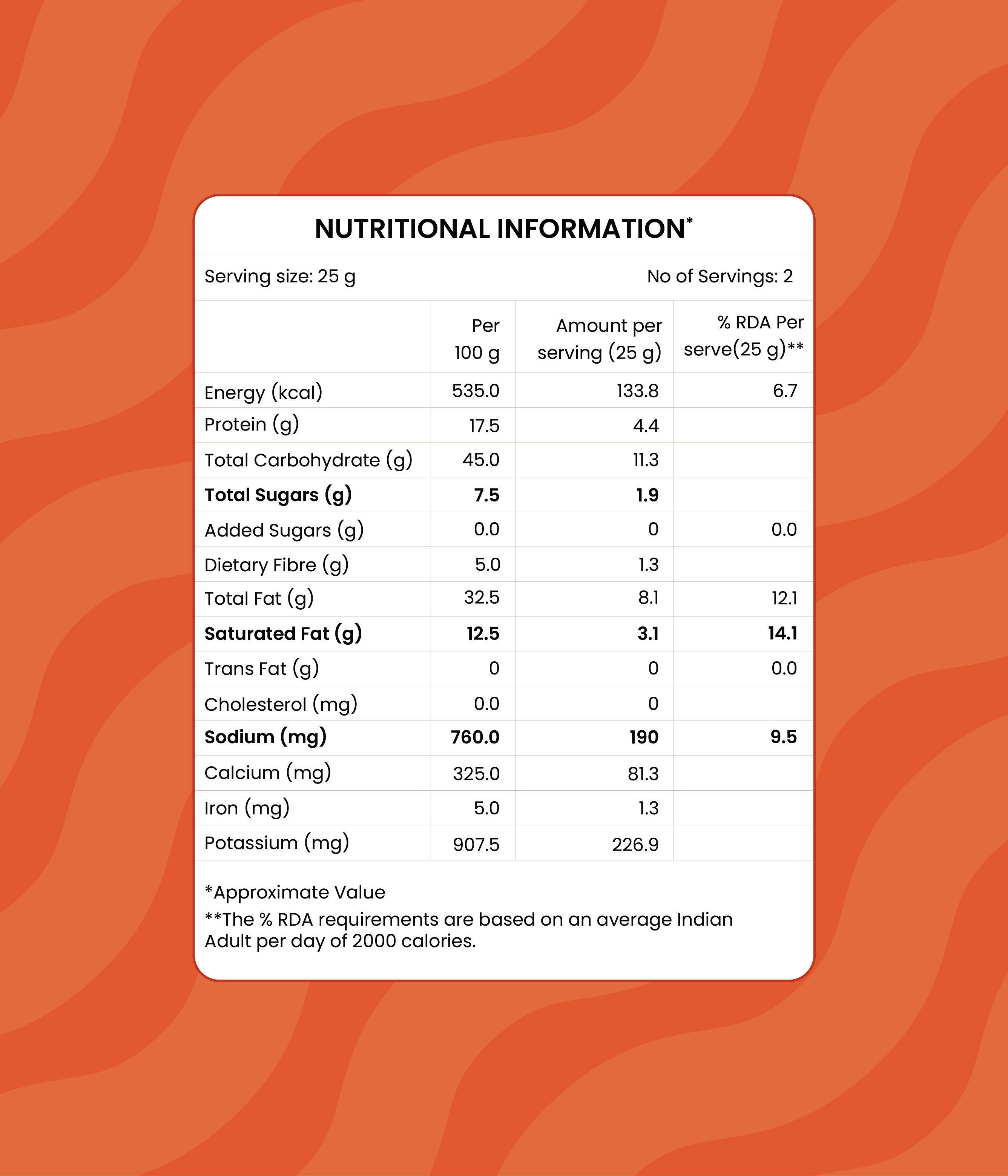 Barnyard Millet (54%), Moong Dal (22%), Ghee, Cashew Nut, Cumin, Salt, Curry Leaves, Green Chilli, Ginger & Black Pepper. |