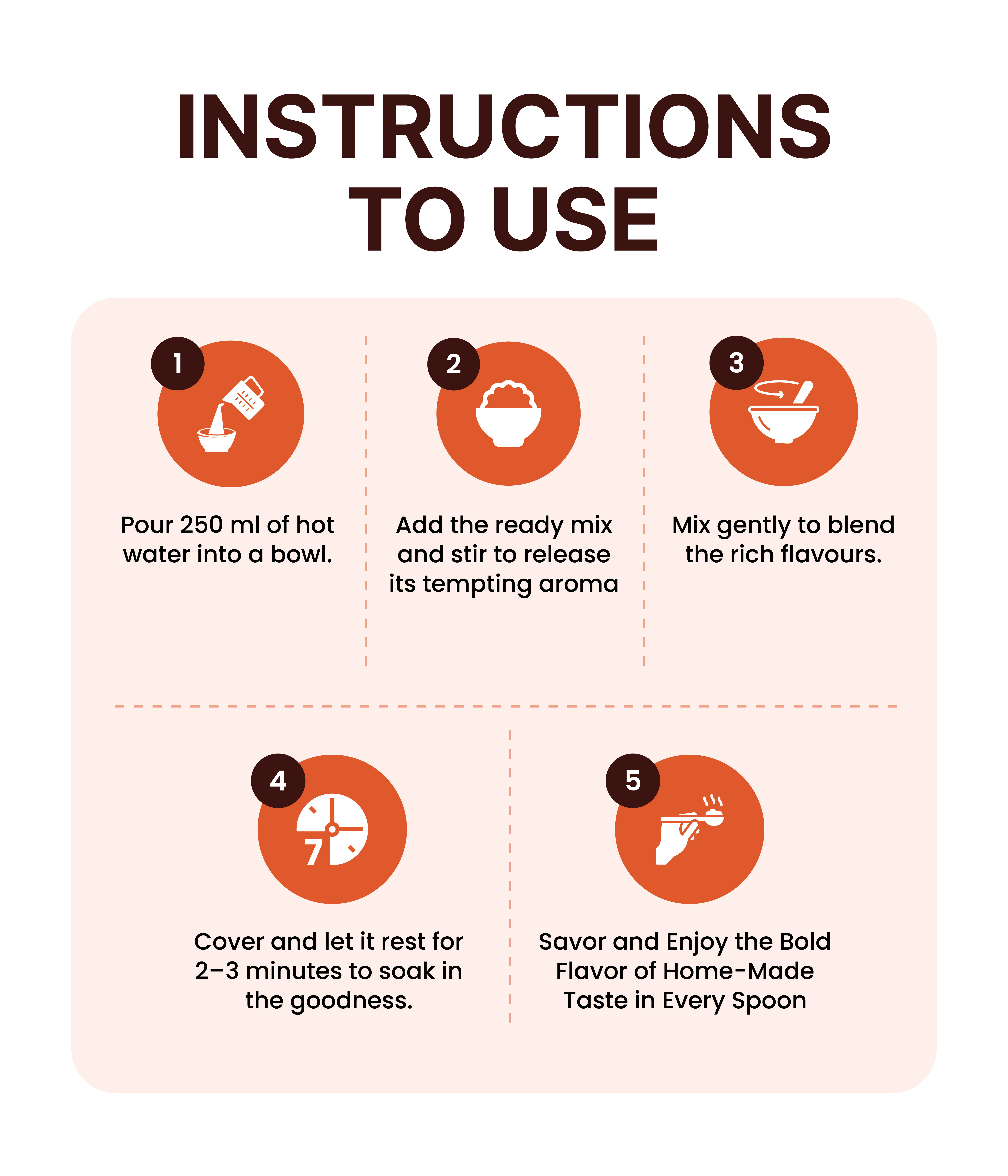 Preparing a FOT meal is simple and quick. Just add hot water as mentioned on the pack, stir well, cover, and wait a few minutes. Your meal will be ready to enjoy. You can also prepare it using a microwave oven for added convenience.