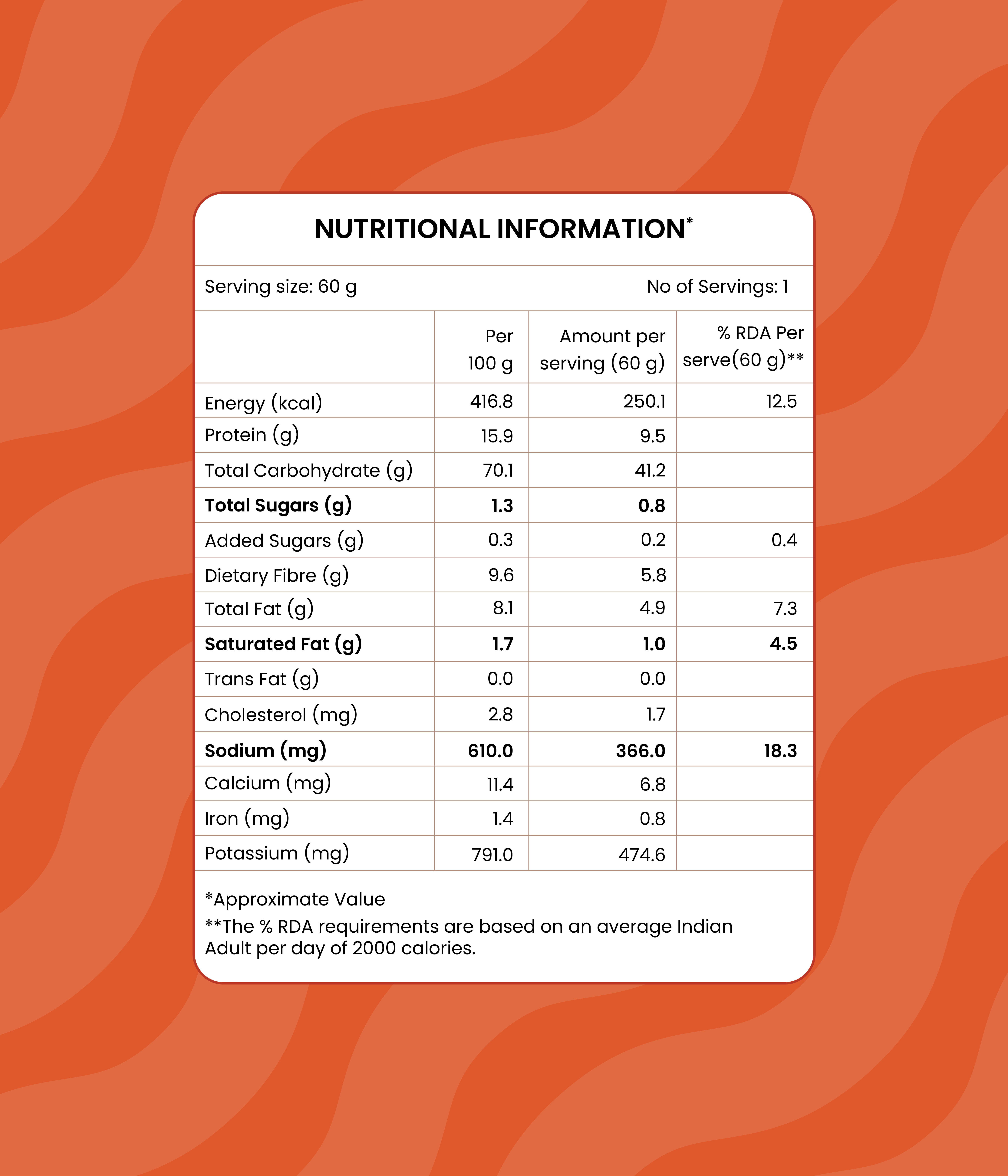 Sambar (70%) [Tomato, Small Onion, Toor Dal, Moong Dal, Drumstick, Ghee, Salt, Edible Vegetable Oil (Coconut Oil), Spices & Condiments, Jaggery, Asafoetida, Curry Leaves, Mustard Seeds, Fenugreek Seeds], Idly (30%) [Idly Rice, Urad Dal, Rice Flakes & Salt].