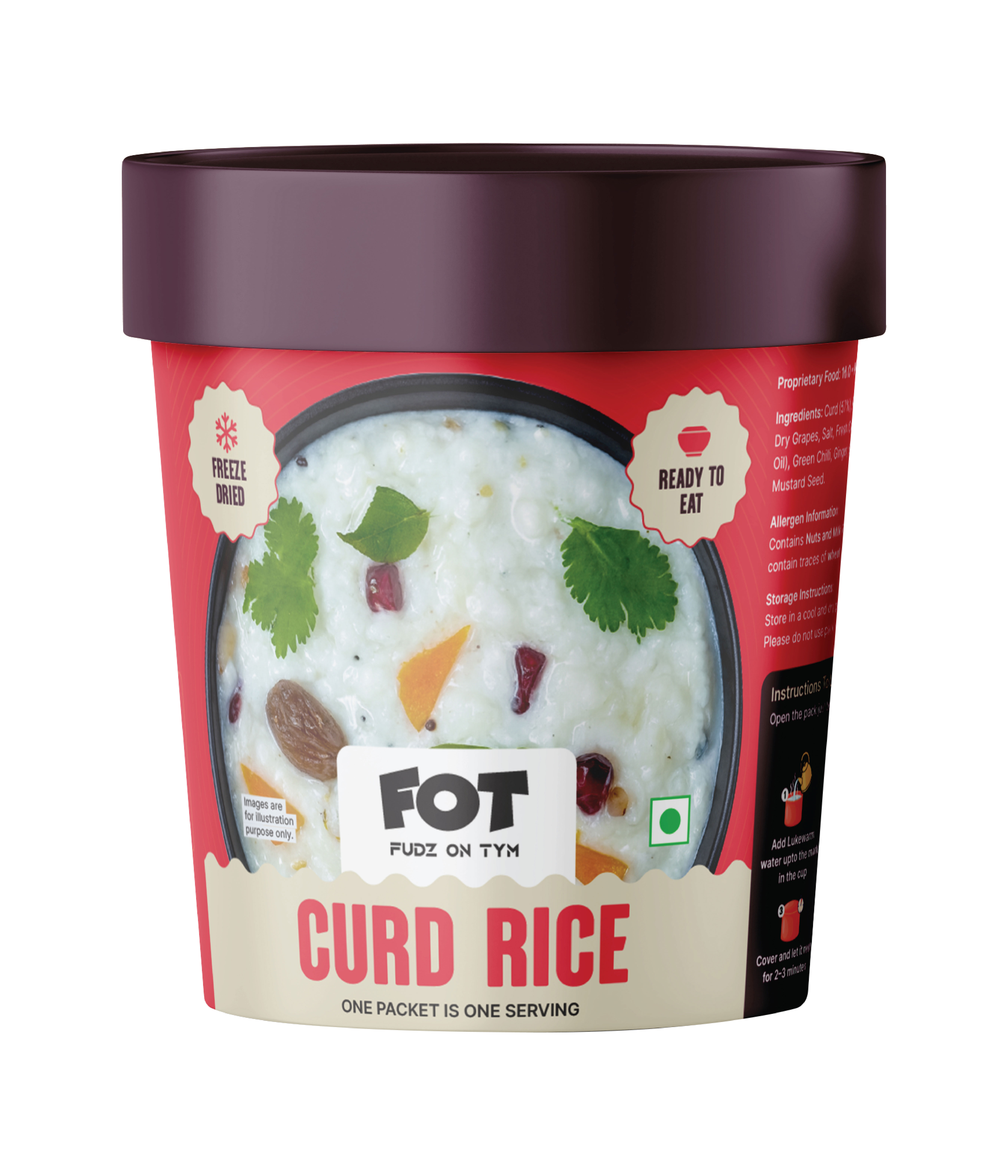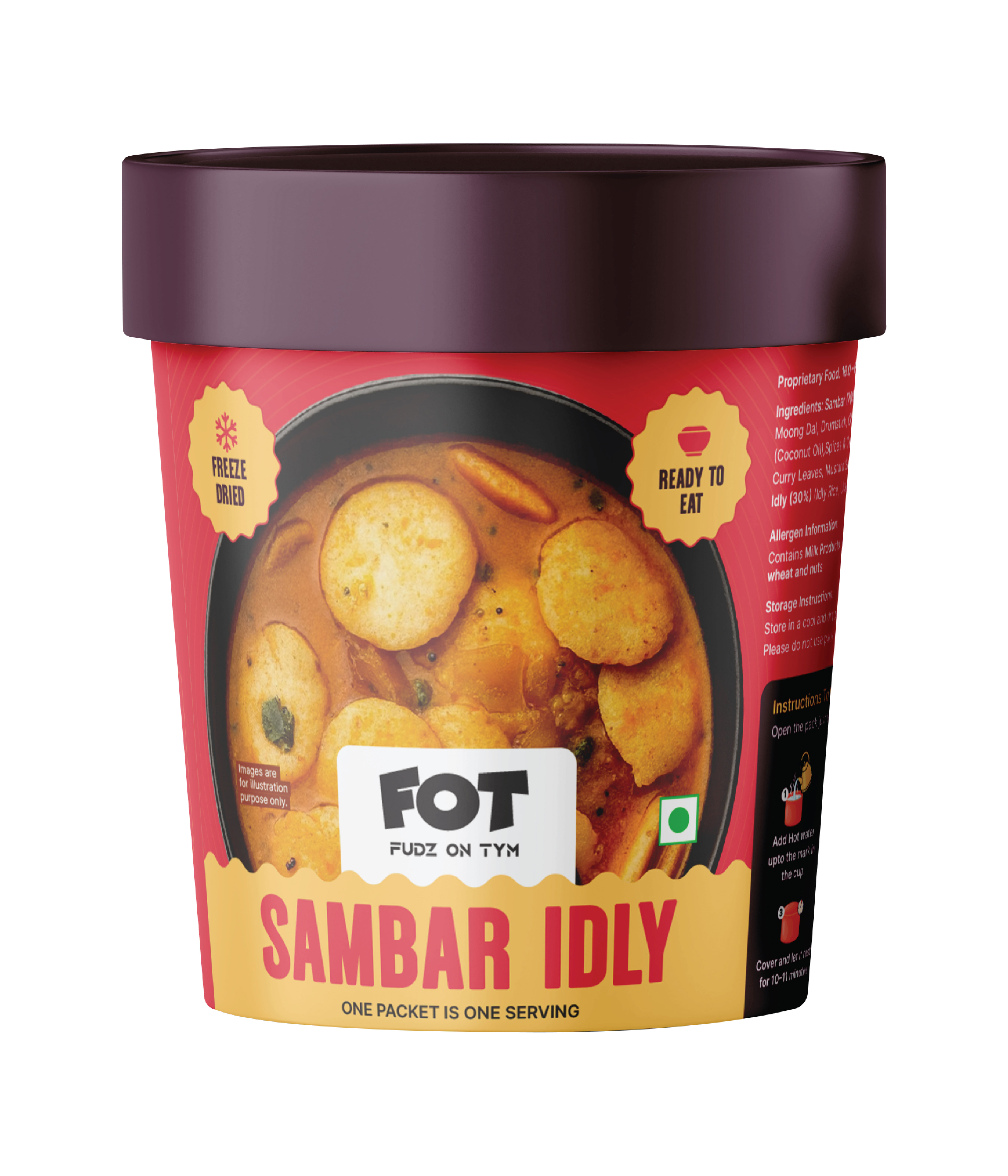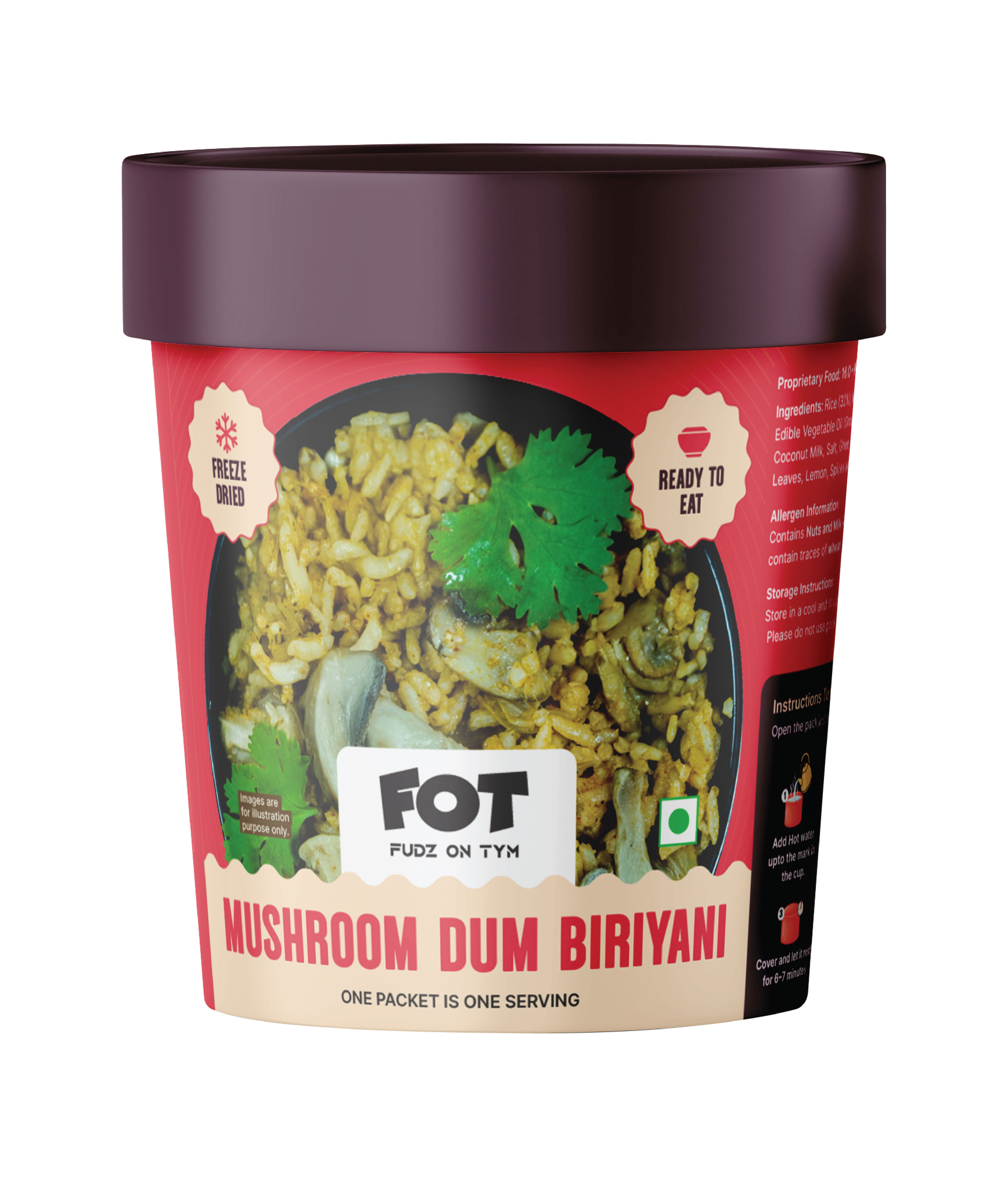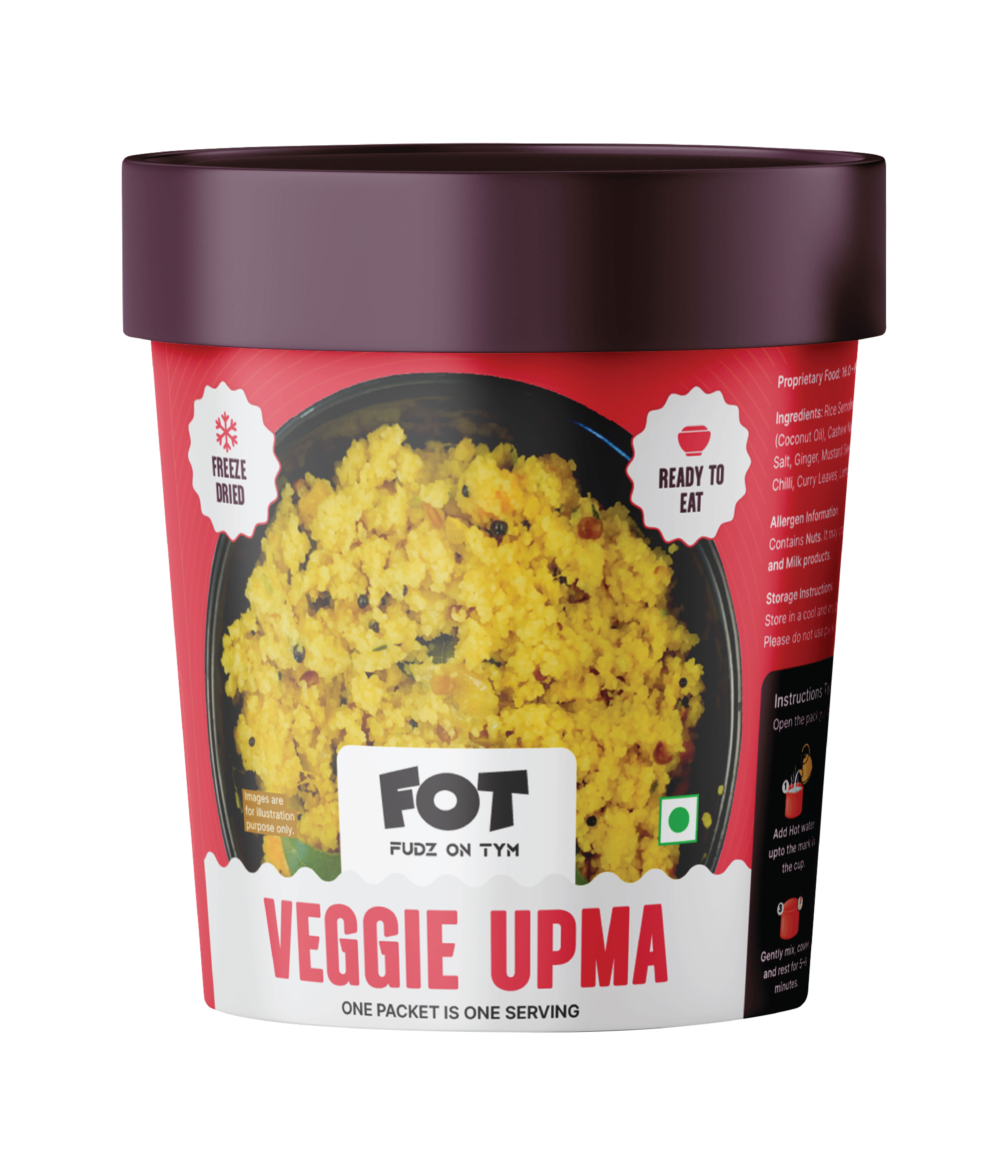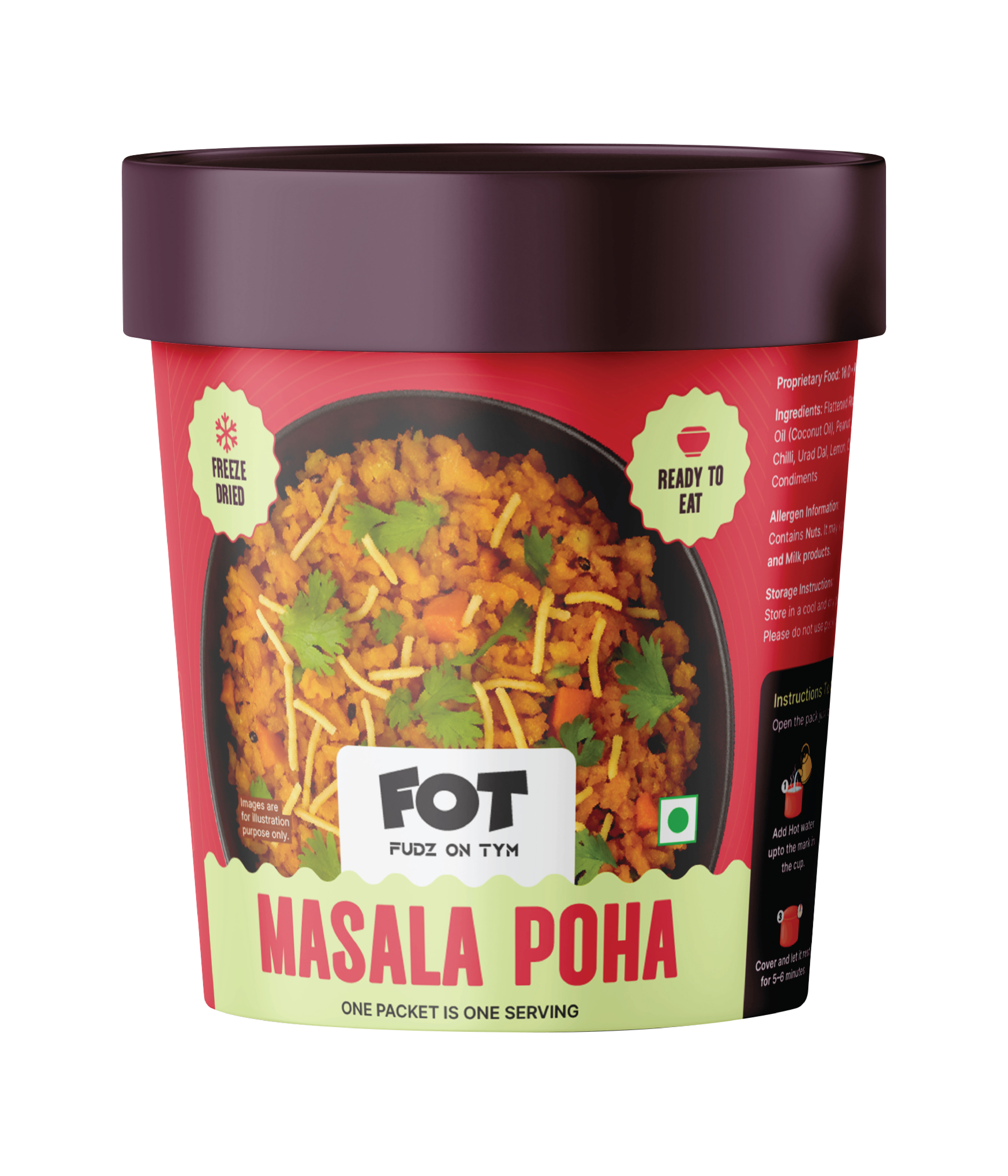 Preparing a FOT meal is simple and quick. Just add hot water as mentioned on the pack, stir well, cover, and wait a few minutes. Your meal will be ready to enjoy. You can also prepare it using a microwave oven for added convenience.